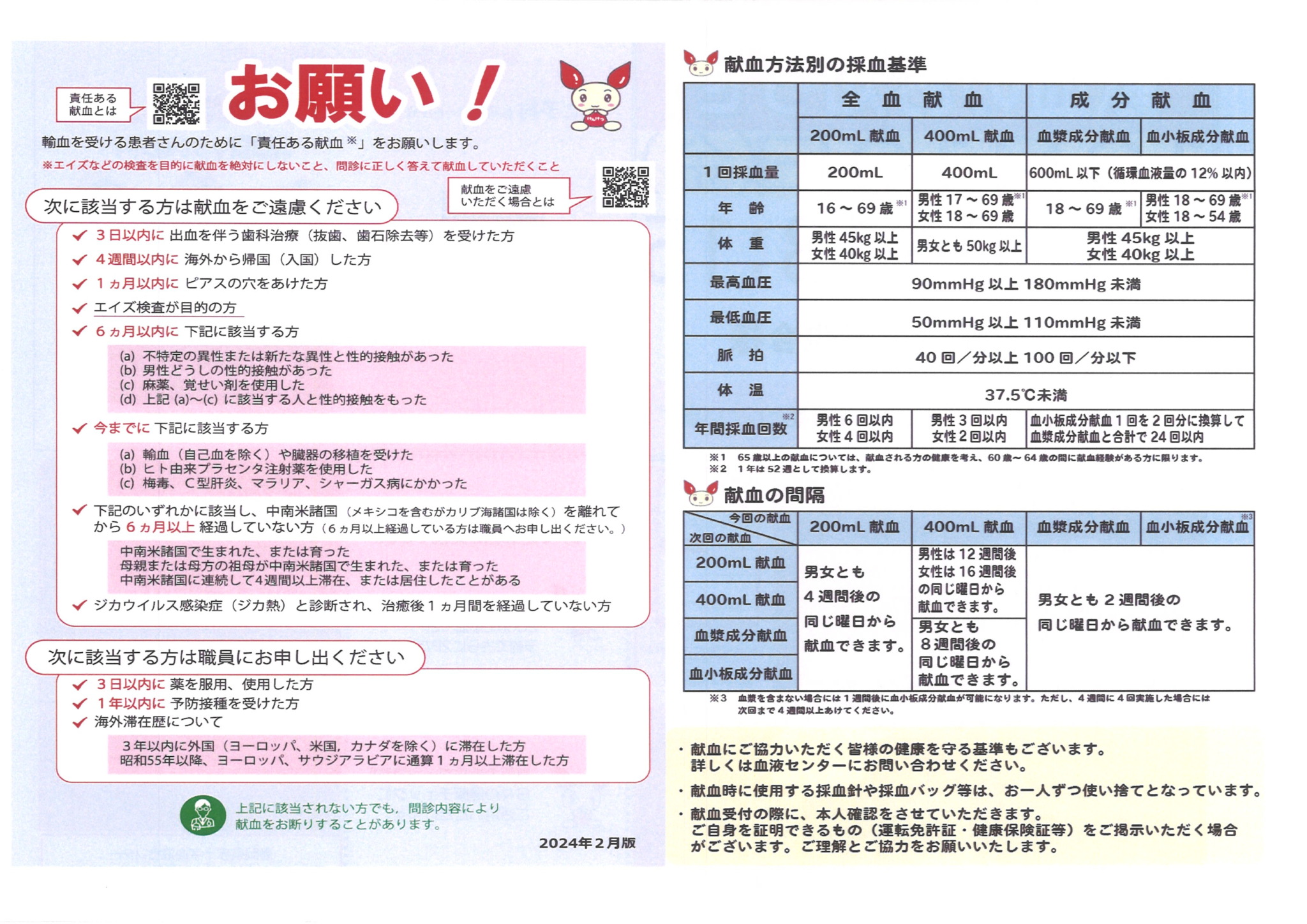 組合事務局より 次回の献血日程(2026年2月13日(金)12:00~13:15) 新着情報 2026.01.06 2026年年2月13日(金)12:00~13:15 組合事務所前にて献血バスによる献血を実施します。 御協力よろしくお願いします。 新着情報一覧へ戻る
