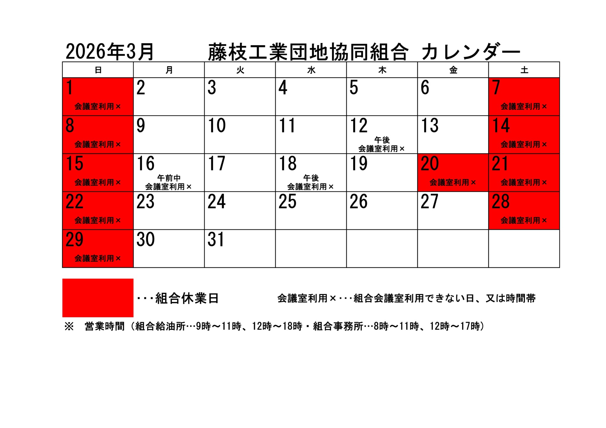 組合事務局より 2026年3月営業日と会議室利用状況のお知らせ